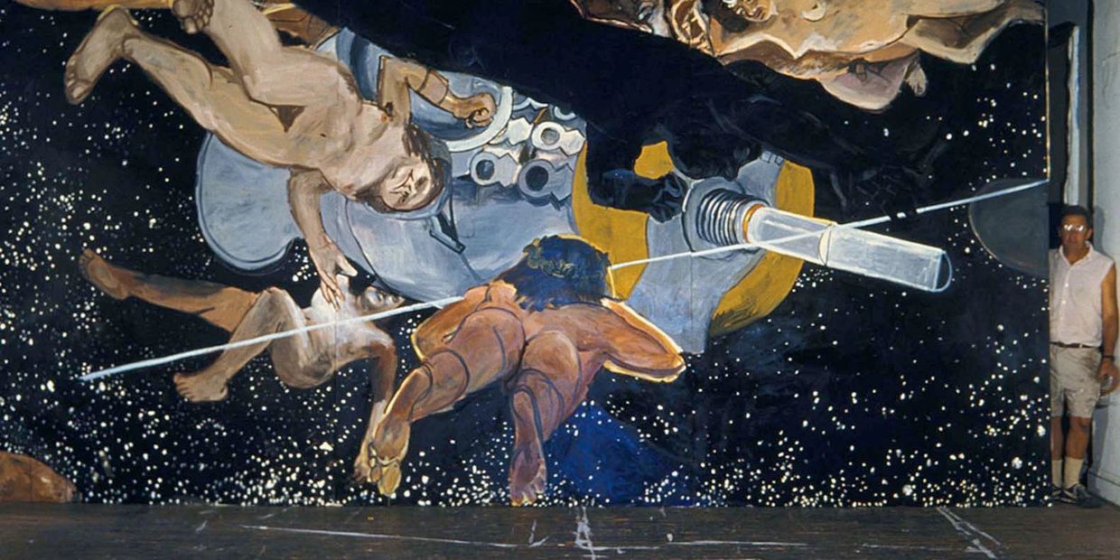 PG-1960 & 1961 photo credit ©2022 Fred McDarrah. Hans Hofmann School, 1947 photo credit by Thomas Roderick, courtesy Maria, Hans & Renate Hofmann Foundation. 6 hander photo credit Richard Brooks,1975. next 2 NY studio photo credit ©2022 Arthur Mones Estate.Stretcher atop car CA photo credit Hank Pitcher
